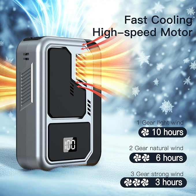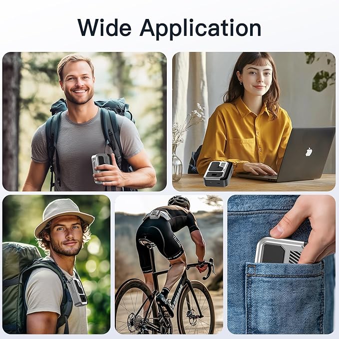 • 【Powerful Cooling with Quiet Performance】Our portable waist fan features a high-performance brushless motor with direct-through airflow technology, delivering exceptional cooling with 3 adjustable speed settings. The powerful turbine airflow reaches up to 10,000 RPM. You can enjoy quiet operation with gentle breeze (25dB) at level 1 or experience powerful cooling at level 3 on the hottest days,making it suitable for any environment from quiet offices to outdoor adventures.