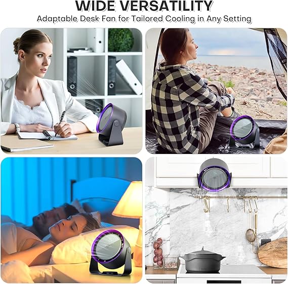 • Multifunctional Air Circulator Fan :The portable fan combine Wall Mount on fan with desk fan. With a strong Holder that allows them to attach to unusual places, such as Kitchen Cabinets,Wall of the Bathroom, the frame of a treadmill or even a nightstand for those who tend to get overheated.