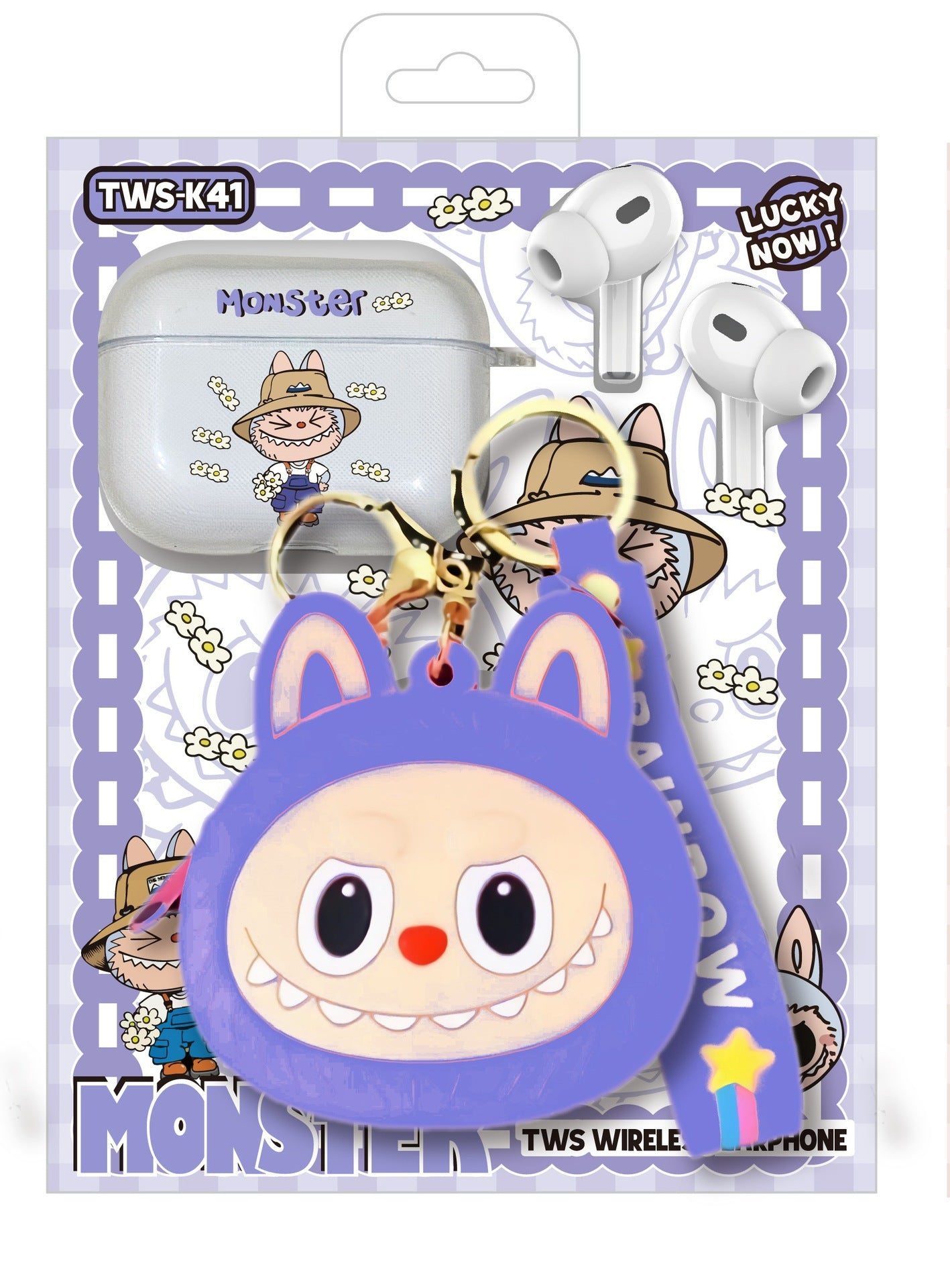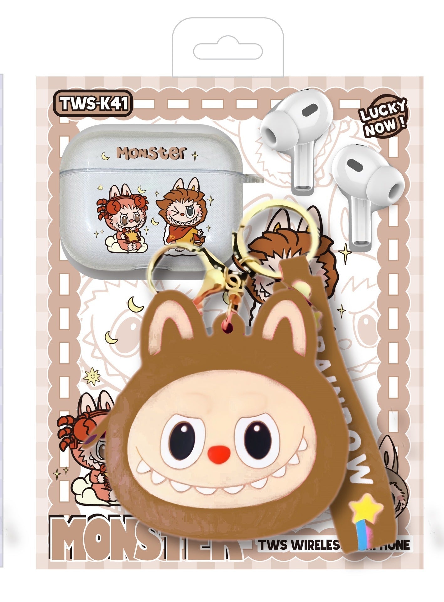 Labubu Design Airpods Pro Blutooth+ Airpod case+ Labubu keychain  Design Airpods Pro Blutooth+ Airpod case+ Labubu keychain