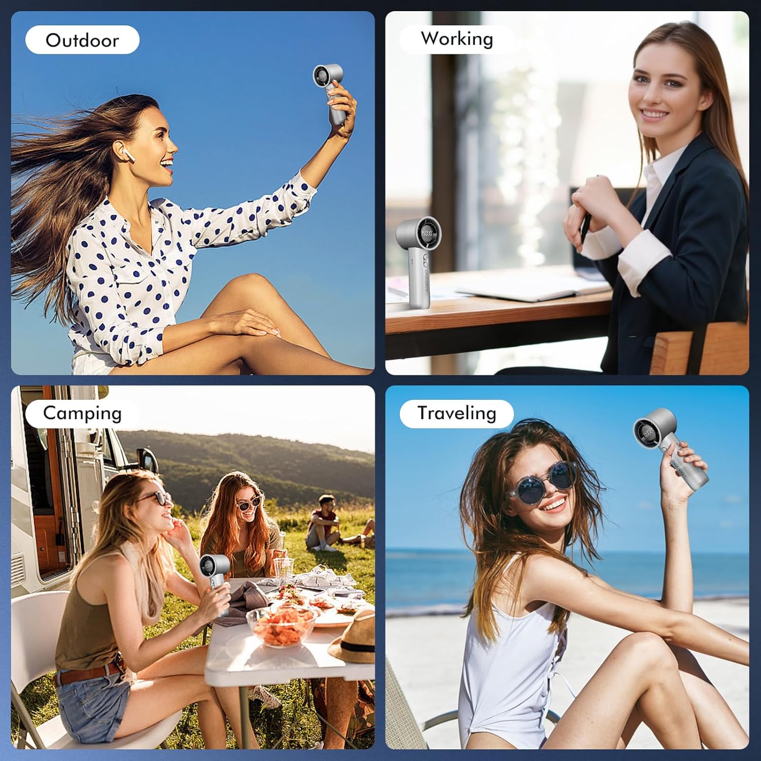 Stay cool and comfortable anywhere with our High Speed Handheld Fan! Powered by a brushless motor, this fan offers strong performance, while the scroll switch lets you customize the wind speed to your liking. The advanced technology design ensures cold wind delivery, perfect for sweltering weather.The fan's digital display allows you to monitor the power conveniently, and the multiple fast charging methods mean you'll never have to suffer from the heat for long. With its compact and portable design, you can easily carry this fan around, ensuring you're always cool and composed.Bring home this high speed handheld fan today and enjoy a personalized and powerful cooling experience. Stay cool on the go!Note After-Sales Warranty included for added customer satisfaction
